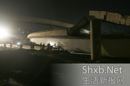 立交垮塌現(xiàn)場(chǎng)圖。來(lái)源:生活新報(bào)網(wǎng) 記者 張訓(xùn)武攝