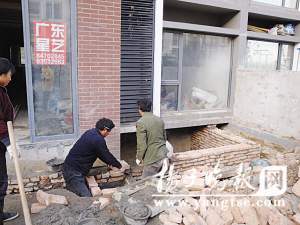 下午,記者來(lái)到萬(wàn)達(dá)紫金明珠小區(qū)。進(jìn)了大門(mén)一直往里走,36幢就在路邊上,施工現(xiàn)場(chǎng)一目了然。這里一樓的住戶(hù)都有院子,正在施工的那家人,院子門(mén)口有施工人員進(jìn)進(jìn)出出。湊近了看,院子里堆滿(mǎn)了磚塊、水泥,幾個(gè)施工人員正在砌磚、刷墻,忙得熱火朝天。正如網(wǎng)上的照片,這家房屋的正下方被打空了,形成一個(gè)長(zhǎng)方形的大坑,約有2米多深,也就是所謂的“地下室”。