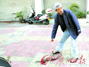 昨天上午,記者接報料后趕到事發(fā)地三水西南街道三達(dá)路冰皇咖啡館門前,一瘦小個男子頭部打著紗帶,血跡印紅了紗布,男子的牛仔褲上仍有血跡,地上有一攤已經(jīng)干了的血跡及零星血點(diǎn)。該男子告訴記者,他就是昨晚被打之人,他叫蘇成營,今年34歲,是肇慶封開縣長按鎮(zhèn)人,在三水做裝修工作。