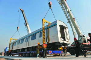 。ū本┦校┦着罔F4號(hào)線新車昨日進(jìn)入馬家堡車輛段,為明年2月開始的冷熱滑試驗(yàn)做準(zhǔn)備。初定明年9月底,4號(hào)線正式通車運(yùn)營(yíng)。