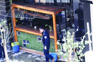 “我當(dāng)時聽到‘砰’的一聲巨響,接著看到一些碎玻璃飛到了保安室的門口”,楊谷平趕緊跑出去查看,看到咖啡吧后面右側(cè)的衛(wèi)生間窗戶冒出一股濃煙,但是沒有明火,而左側(cè)的廚房玻璃則完好無損。楊谷平立即與小區(qū)負(fù)責(zé)修理的物管一起,從前門沖進(jìn)咖啡吧,進(jìn)門看到屋里已經(jīng)濃煙彌漫,收銀臺的服務(wù)員正在驚慌地?fù)艽驁缶娫,酒吧的?fù)責(zé)人則束手無策地站在濃煙外圍。