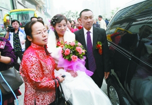 而他與成都女子劉如蓉結(jié)識9日后于11月18日登記結(jié)婚。由于劉如蓉在深圳南山打工,南山區(qū)婦聯(lián)經(jīng)過多方聯(lián)系,邀請他們參加此次來深建設(shè)者的婚禮,并免掉了全部費(fèi)用。