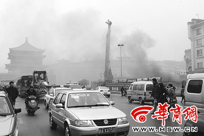 出事地點位于地鐵二號線鐘樓站右線隧道北端。上午10時20分許,記者趕到現(xiàn)場,看到坑道內(nèi)不斷向外冒黑煙,且越來越濃,濃煙順著隧道從20米外的另一出口排出,很快,鐘樓便籠罩在濃煙中,行人紛紛掩鼻而過。數(shù)名身著防護(hù)服背著壓縮空氣的消防戰(zhàn)士正在坑道作業(yè),一名消防戰(zhàn)士說,因為著火處有障礙物且濃煙影響視線,所以只能在外圍滅火。11時許,煙霧明顯減少。