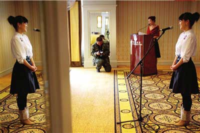 昨天下午1點,在長富宮飯店水蓮廳內,記者看到了20名年輕女孩面容姣好,衣著、面部均進行了精心修飾。主辦者介紹稱,她們就是參加這次“東方淑女甄選之旅”的20名參賽選手,其中的14人是來自北京各大高校的在校生。