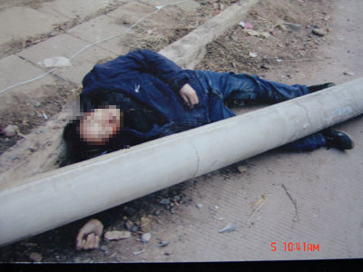 “我們到網(wǎng)通公司討要說法,該公司警務(wù)室一姓任的警官說,‘這事就按糾紛處理,出于人道給你們3000元算了,恁家在市委沒有人,有人的話就按事故處理,那就賠錢多了!懵犅犓f的像人話嗎?所以我們?cè)谒麄冮T口打出了‘我市委沒有人的橫幅’!濒斨谐瘹鈶嵉卣f。