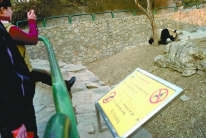 動物園工作人員表示,鑒于動物園曾發(fā)生過游客跳入大熊貓運(yùn)動場被咬事件,園方已安排動物展示時(shí)專人看護(hù),并在多處多角度設(shè)置了警示牌、提示牌。
