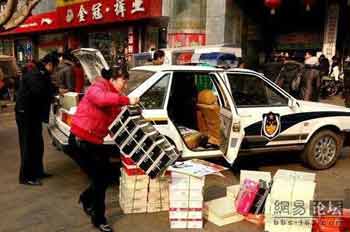 發(fā)帖者網(wǎng)友“明宇”在名為《何等猖狂:山西臨汾開著無牌警車做買賣》的帖子中稱,他在臨汾市中心繁華區(qū)遇到兩輛無牌“警車”。其中一輛停在某市場門口的路邊,從車上下來一名穿制服但沒戴帽子的“警察”。這名“警察”與一婦女一起從車上往下卸貨。從發(fā)帖者上傳的照片看,“警車”的后排座位上和后備箱里都裝滿了貨,兩人卸下的包括鞋盒、塑料袋等貨物擺了一地!霸鯓邮褂镁噰矣袊(yán)格的規(guī)定,不知這位警察是否知道?”發(fā)帖者說。