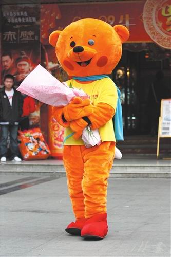 這幕街頭愛情劇的男主角叫李凌冰,說起剛剛的當(dāng)眾告白,李凌冰笑著說:“你都不曉得,這個玩偶服裝又悶又熱,我又緊張,就上了好幾次廁所。哪曉得熊尾巴還掉了,尷尬慘了。還好,總算是有驚無險地成功了。”
