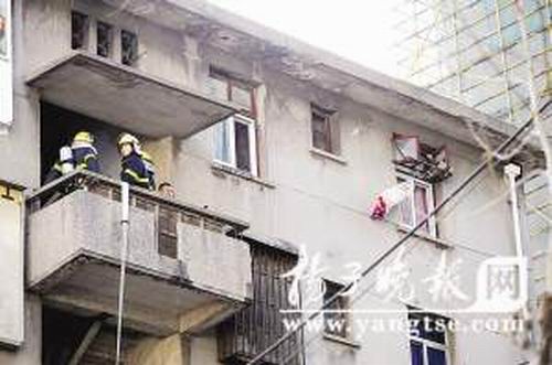 昨天下午2點(diǎn)半鐘左右,在南京下關(guān)區(qū)鐵路北街新民村33號住宅樓前圍了許多群眾,警方在通往居民樓的通道外拉起了警戒線,禁止無關(guān)人員進(jìn)入,在警戒線內(nèi)的地上放著一瓶液化氣,此時消防隊員仍在來回穿梭地忙碌著。住在四樓的一位居民稱,著火的是6樓的一戶人家,好像是有人縱火。如果不是5樓的一位大媽及時發(fā)現(xiàn)大聲喊叫,大家還都不知道。