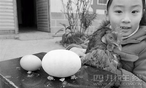 對(duì)此,四川農(nóng)業(yè)大學(xué)動(dòng)物科技學(xué)院教授劉益平說(shuō),“一般這樣大的異形蛋是在雞蛋已成型后被輸回去的,很可能是蛋包蛋!