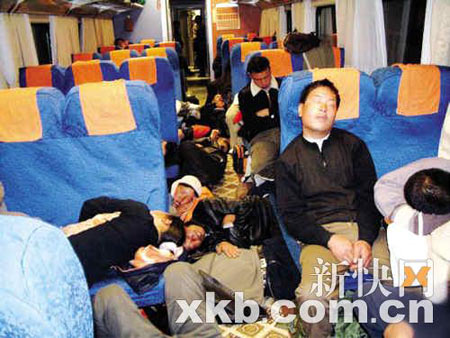 這位網(wǎng)友“南慕整容”在天涯社區(qū)的這篇題為《說說你坐春運(yùn)火車的事》的帖子中,講述了坐火車的感受與故事。他認(rèn)為坐火車的一大特點(diǎn)是臟,尤其是春運(yùn)。他描述道:“平日里我們用人均面積來算人居環(huán)境,到了火車上得換成人均體積,擠過火車的人都有同感,座椅底下是人,行李架上是人,廁所能擠進(jìn)去六七個(gè)人。我坐臥過的就有地板、座椅頂端、洗手臺子、車廂接口處的垃圾袋子、行李架,無所不用其極。偶爾也有幸福的時(shí)候,有次去廣州,一個(gè)十七八歲的俊俏大姑娘實(shí)在熬不住,趴在我大腿上睡了一晚,來接站的哥們聞之艷羨不已,他不知道,我的腿都給壓腫了。”