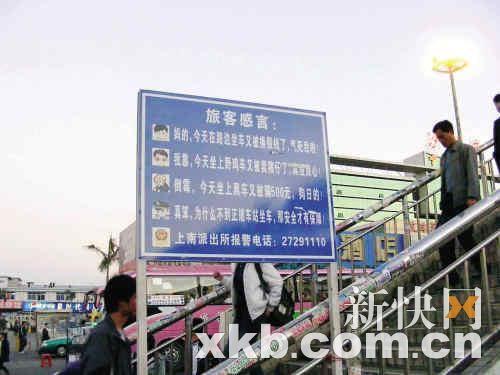 豎于沙井客運中心附近,工作人員稱只為提醒旅客不受騙