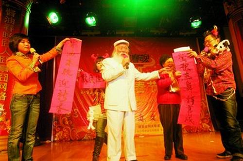 昨晚(1月21日),備受期待的長沙醬油春晚在一家星級酒店亮相。這臺沒有用一分錢贊助費、所有節(jié)目都是網(wǎng)友自編自導(dǎo)的晚會,帶著它濃郁的草根味道,在將近2個半小時里囧翻了臺下所有人,整個晚會現(xiàn)場笑聲一片,演出者和觀眾都很HIGH。昨晚的醬油春晚,共分為雷人惡搞、群時代群生活、感動中國、歡慶與祝福四個章節(jié),共有24個雷人舞蹈、小品、雙簧等原創(chuàng)節(jié)目亮相,“醬油”“群生活”等詞匯貫穿整臺晚會。用組織者老段的話來講,2009年將開創(chuàng)一個醬油春晚元年。據(jù)悉,醬油春晚將于除夕夜在PPlive播出,與央視春晚同時段PK,元宵節(jié)當(dāng)天還將在相關(guān)媒體上揭曉出“最受歡迎節(jié)目”,獎品是一瓶醬油。