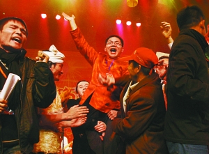 當(dāng)汶川地震災(zāi)民表演的歌曲和舞蹈時(shí),全場(chǎng)觀眾起立致敬!八麄兘(jīng)歷災(zāi)難,但很堅(jiān)強(qiáng)”。河南籍工人小張說(shuō),晚會(huì)節(jié)目貼近百姓,也很精彩。