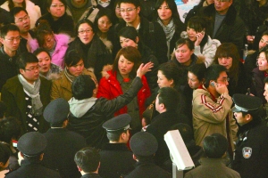 昨日中午,3號航站樓C33口登機處聚集了200多名乘客,部分乘客情緒激動,不時高喊“我要回家”之類的口號。一國航值班經(jīng)理在現(xiàn)場被乘客圍住,20余民警來到現(xiàn)場維持秩序。