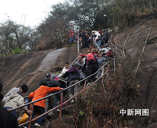 記者在登山的時(shí)候,發(fā)現(xiàn)了一撥來(lái)自四川災(zāi)區(qū)的同胞們也趕至丹霞山慶新年。他們是曾氏家族、四世同堂30多人浩浩蕩蕩地開著五部車從成都慕名來(lái)到丹霞山,他們?cè)谶@雄偉壯觀的丹霞美景的面前,也許下了對(duì)四川、對(duì)祖國(guó)的美好新年祝愿:“丹霞最美、丹霞最牛、四川雄起、祖國(guó)昌盛”!