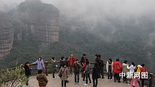 中新網(wǎng)韶關(guān)1月31日電(馮昶 劉加青 李正紅)從大年初五起,由于天氣轉(zhuǎn)好,廣東韶關(guān)市丹霞山風(fēng)景區(qū)出現(xiàn)美麗的云海景觀,吸引眾多游客觀賞,景區(qū)接待持繼升溫。據(jù)統(tǒng)計(jì),昨日共接待游客近2.6萬(wàn)人次。自助自駕游游客劇增,同比增長(zhǎng)一倍半以上,其中有不少來(lái)自四川災(zāi)區(qū)的民眾。