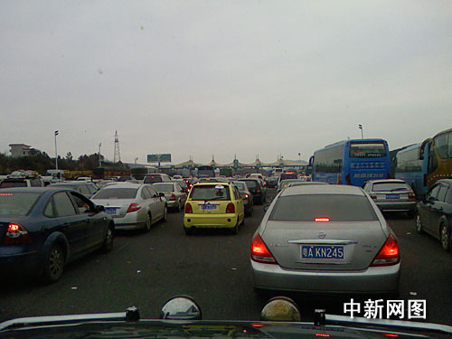 而在昨天下午,京珠高速湖南宜章段因收費站繁忙而堵車,車龍長達七公里;在永興段又因交通事故造成堵車,車龍也有七公里長。為此,湖南省政府決定在宜章小塘收費站對所有車輛實施間斷免費放行。