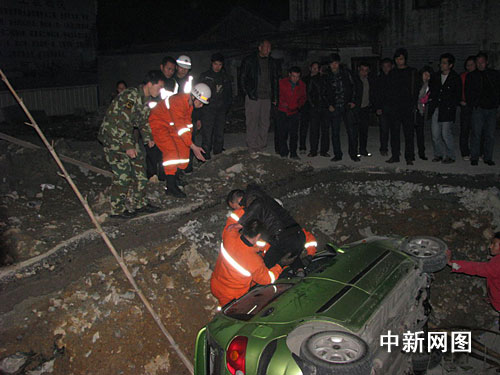 記者在現(xiàn)場(chǎng)看到,該輛綠色雪佛蘭轎車側(cè)翻在施工大井里,大井不少建筑鋼筋被折彎,一架竹梯也被折斷,一名男子被困在駕駛室內(nèi),現(xiàn)場(chǎng)凌亂不堪,道路上的警示圍墻被撞了個(gè)大洞,還清晰可見圍墻上的“注意安全,道路施工,禁止通行,請(qǐng)繞行”等警示標(biāo)語。