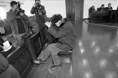 庭審時(shí),99歲老漢周志評(píng)被法官特許坐著受審。聽(tīng)了一會(huì)兒后,他放松了下來(lái),一度還蹺起了二郎腿。
