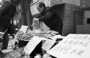 “我賣(mài)水果正好20年,別的業(yè)余愛(ài)好沒(méi)有,就是收攤后回家看看書(shū)、寫(xiě)寫(xiě)字!崩贤踅衲40歲,北碚區(qū)柳蔭鎮(zhèn)人。是江北中學(xué)1989屆畢業(yè)生。由于家境貧困,高中剛剛畢業(yè)的他就開(kāi)始了販水果的生涯。