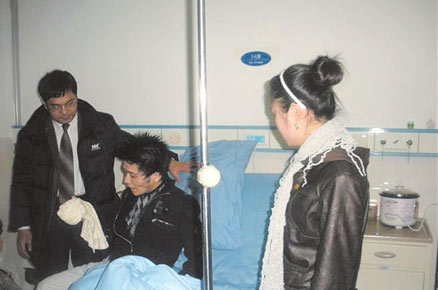2月2日,都江堰心理志愿者劉猛等人到病房看望了母廣翔,劉猛捐了1000元醫(yī)療費救急。次日一大早,劉猛等再次造訪病房,這次他們帶去的不是捐款,而是一次實實在在的“心理訪談”。
