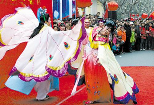 昨天下午,優(yōu)雅而窄窄的泰興路上,到處張燈結(jié)彩,到處是歡聲笑語(yǔ),有社區(qū)居民客串的舞龍、舞獅、蚌燈、蕩湖船、走花轎行街表演,有王家沙搬來(lái)的全套上海小吃,有街頭老藝人的面人和彩蛋,有街坊鄰居間玩的抖空竹和拔河游戲,有滿街掛著的各種元宵燈謎,還有穿著華貴旗袍和長(zhǎng)衫的老上海花樣女子和說(shuō)書(shū)先生的街頭行為藝術(shù)……這就是南京西路街道舉辦的元宵張園游園會(huì)。
