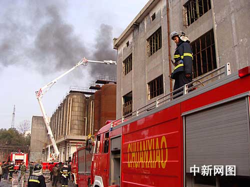 9日下午3時許記者在事發(fā)現(xiàn)場看到,6輛消防車停在火災(zāi)現(xiàn)場,消防官兵正在升起云梯架起高噴槍滅火,濃濃黑煙從車間三樓冒出,緊挨著該車間內(nèi)的是數(shù)十個發(fā)酵罐。隨后,記者上到車間二樓發(fā)現(xiàn)著火處為三樓的通風(fēng)隔熱層。由于該隔熱層并沒有通道進(jìn)入,消防官兵只有在外圍展開施救。