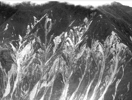 地震是一種不以人的意志為轉(zhuǎn)移的自然現(xiàn)象,雖然汶川大地震帶來了巨大的傷害,但也帶來了新的自然奇觀———從映秀到蘿卜寨沿線的山崖上,由于地震山體滑坡,形成了大量的地震壁畫奇觀。