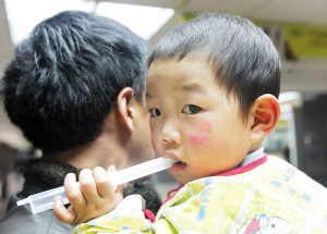 李貴樹是河北張家口蔚縣草溝堡鄉(xiāng)高莊子村村民,今年37歲。大兒子今年過完年去保定一家餅干廠打工。小李瑞幾天前剛過完兩周歲生日,與母親相比,小家伙更喜歡與父親在一起玩兒。平時(shí)李樹貴只要一出門,小李瑞便大聲喊“爸爸,回來”。正是這份親情,看上去比實(shí)際年紀(jì)大不少的李貴樹特別喜歡這個(gè)小兒子,抱著時(shí)總親個(gè)不停。