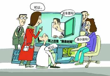 在搜索引擎百度上輸入“出售剩余時(shí)間”,可得到相關(guān)網(wǎng)頁400多萬篇,“出售時(shí)間”生意的火爆可見一斑。“你想干什么我來幫你完成,給你節(jié)約時(shí)間,用我的時(shí)間來給你辦事,然后你支付一定的費(fèi)用,這就是‘出售剩余時(shí)間’。”網(wǎng)友劉女士在廣告上如此解釋“出售剩余時(shí)間”。