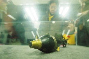 展覽現(xiàn)場一枚炮彈“現(xiàn)身”展柜