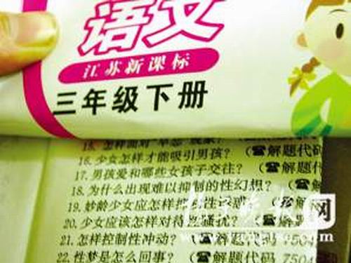 而對(duì)于在低年級(jí)書本中出現(xiàn)涉性的問題,該人士表示自己并不清楚,可能是相關(guān)機(jī)構(gòu)自己添加的。隨后他又補(bǔ)充說,這些話題其實(shí)是和素質(zhì)教育有關(guān)系的,在學(xué)校里學(xué)生是學(xué)不到的,因此就作為輔導(dǎo)材料的補(bǔ)充,多增加點(diǎn)知識(shí)也是好事。