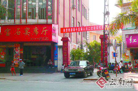 昨日,記者趕到了元江縣的事故發(fā)生現(xiàn)場(chǎng)。午后的紅寶石酒店顯得有些悶熱,一堆司機(jī)或是乘客就地坐在門口乘涼,一輛本田汽車無端停在門前的路上,占據(jù)了1/3的路面,一輛大車從酒店內(nèi)停車場(chǎng)出來時(shí),不免小心翼翼,生怕撞上狹窄的大門或者路邊的人。這已是車禍發(fā)生后的第四天,車禍地點(diǎn)早已恢復(fù)了平靜。紅寶石酒店停車場(chǎng)內(nèi)還停了10多輛紅河牌照的大貨車。