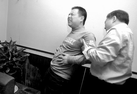 記者希望蔡玉建為自己點(diǎn)穴,蔡玉建讓記者站好放松,左手幾個(gè)指頭迅速對(duì)準(zhǔn)記者右肋下甩了過(guò)來(lái),記者突然感到右肋下和腹部中一陣劇烈的疼痛,整個(gè)臟器、腸子好像絞在了一起,繼而頸部全部麻痹、呼吸困難,記者難受地喊叫,卻發(fā)現(xiàn)只能叫出一兩個(gè)字,剛想活動(dòng)手臂,卻不料動(dòng)一下竟然招來(lái)更加劇烈的疼痛。
