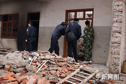 消防隊員到達(dá)現(xiàn)場時看到坍塌現(xiàn)場一片狼藉,到處是破碎的磚瓦,樓房第一層三間房子均被大量磚瓦埋壓,其中位于中間部位的房子坍塌最為嚴(yán)重。經(jīng)詢問得知,這就是兩名幼兒被埋壓的房間。