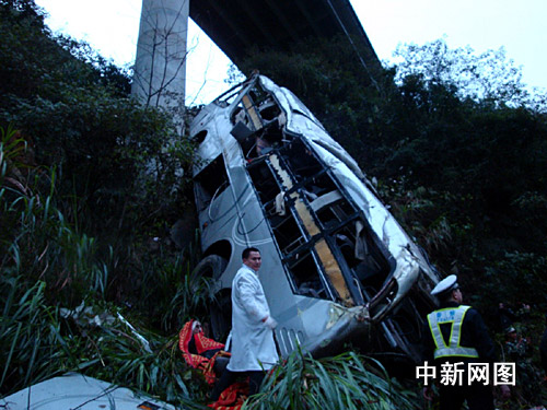 接近天亮時,救援人員發(fā)現大客車內尚有一名青年婦女,被變形的臥鋪擠壓動彈不得。而此時,由于大客車尚掛在崖壁上,進入救援隨時會導致大客車繼續(xù)滾落。不得以,現場只能請吊車將大客車稍事固定,救援人員利用人力將臥鋪撐開,才將傷者救出,這也是事故中最后一名傷者。