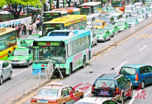 昨日(7)中午12時(shí)許,在廣州天河區(qū)崗頂公交車站前等車的趙先生目睹了電影中才會(huì)發(fā)生的一幕:一輛298路公交車猛地沖向馬路中間的護(hù)欄,滑行了近30米后才停下來(lái)。強(qiáng)大的沖擊力將十余個(gè)鐵制護(hù)欄連根鏟起。車上當(dāng)時(shí)載有四五十名乘客,但只有司機(jī)受傷。據(jù)了解,該事故的起因竟是區(qū)區(qū)6元的車資找零。