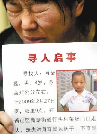 小金鑫長得虎頭虎腦,兩只耳朵特別大,走失時身穿黑色襖,黑色牛仔褲,腳穿白鞋。如果有知情者,可與肖乃術(shù)聯(lián)系,電話是13867159319。