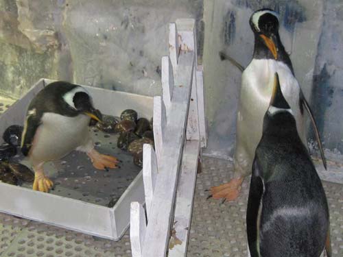 “面壁思過”了幾天后,它們重回故園?紤]到它們想當(dāng)父母的心情,趙毅給了它們一個(gè)“安慰獎”———一枚假企鵝蛋。結(jié)果,它們馬上安靜下來,趴在早已用鵝卵石搭建好的“產(chǎn)房”一心一意孵起蛋來。趙毅發(fā)現(xiàn),它們的孵化本領(lǐng)非常高,甚至比已經(jīng)產(chǎn)蛋的企鵝媽媽更加熟練。
