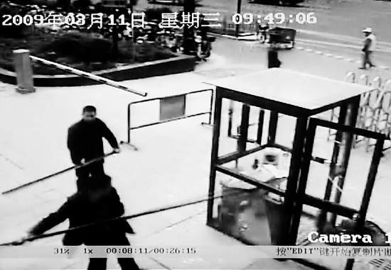 “問(wèn)題是,他們?cè)诒0矝](méi)有任何防備的情況下,沖上來(lái)就打人。三個(gè)人打倒了我們的兩個(gè)保安,還有四五個(gè)人受傷,10多名保安被打得逃到教工路上躲了起來(lái),現(xiàn)在還有一個(gè)躺在醫(yī)院里。我講的都是真實(shí)的情況,如果你不相信,可以過(guò)來(lái)看監(jiān)控錄像!彼麣鈶嵉卣f(shuō)。(包敦遠(yuǎn))
