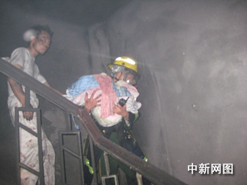 了解情況后,指揮員立即命令官兵迅速展開(kāi)滅火營(yíng)救行動(dòng),鋪設(shè)兩支水槍進(jìn)行滅火,及時(shí)消滅樓梯口的火勢(shì)和濃煙,兩名官兵佩戴空氣呼吸器順著樓梯間深入樓內(nèi)救人,將13名被困人員分批救出,其中有一個(gè)2個(gè)月的嬰兒。經(jīng)過(guò)1個(gè)多小時(shí)的奮勇戰(zhàn)斗,大火被撲滅,被困的居民也全部被救出。