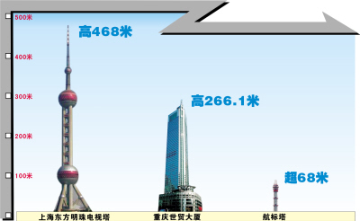 長江重慶航道局人士稱,目前,國內(nèi)已建成的內(nèi)河最高塔在揚州,高66.9米。建這個塔的首要目的是導(dǎo)航,因為三峽水位上漲后,目前庫區(qū)最高的導(dǎo)航塔只有15米,已不能適應(yīng)導(dǎo)航之需。在重慶兩江交匯處建設(shè)超68米的高塔,可滿足江面導(dǎo)航需要,不是為了追求形象。