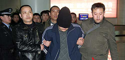據(jù)了解,3月13日晚上,由“3.08”特大搶劫殺人案專案指揮部派遣的13名辦案民警,乘坐火車趕赴滿洲里。14日上午,民警們從滿洲里公安局看守所將這3名犯罪嫌疑人押出,乘坐飛機押解回呼。當(dāng)日16時許,記者來到呼和浩特白塔國際機場。記者注意到,3名犯罪嫌疑人的頭上都被蒙上了頭套,無法看出他們的長相。這3人的個子并不高,其中1人比較胖,另兩人都較瘦小,能夠看得出他們的年齡并不大。雖然他們打扮成學(xué)生模樣,但是他們的穿著還是引起了大家關(guān)注,因為他們都身著嶄新的阿迪達斯牌的上衣和褲子,腳上穿的也是阿迪達斯牌的鞋子。據(jù)民警講,這衣服是他們逃亡到北京后用搶劫到手的錢購買的。
