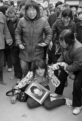 3月13日上午9時(shí),鞭炮清脆炸響,不是因?yàn)橄矐c而是送喪。運(yùn)送徐梗榮尸體的面包車從陜西省丹鳳縣醫(yī)院駛出又停下。徐的母親及大姐癱坐地上,放聲慟哭。她們不滿縣公安局不兌現(xiàn)承諾:出動(dòng)一輛警車在前開道。一番僵持,一輛巡警車終于開來,徐梗榮,這個(gè)19歲少年的尸體在警車開道下,被送回40公里外的寺坪村家里。