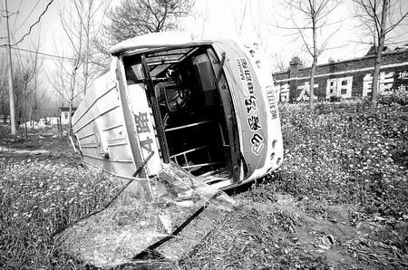 昨天上午9時(shí)40分,平頂山市一輛4路公交車在曹鎮(zhèn)杜莊村自西向東行駛時(shí),與迎面駛來(lái)的一輛車錯(cuò)車時(shí)發(fā)生翻車事故。