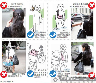 外出放挎包有講究 邊走邊打手機(jī)危險(xiǎn)
