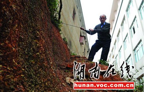 在湖南工程職業(yè)技術(shù)學(xué)院,記者采訪了參與前期拆遷事宜的朱姓工會(huì)主席。談及此事,他也是不斷搖頭。“關(guān)于房屋的補(bǔ)償我們是傷透了腦筋,老吳家不斷加價(jià),學(xué)院無所適從。”朱介紹說,與老吳家一墻之隔的是學(xué)院新建的教學(xué)樓,因?yàn)椴疬w受阻,教學(xué)樓只好修改規(guī)劃。“后移了近5米,看起來歪歪的!