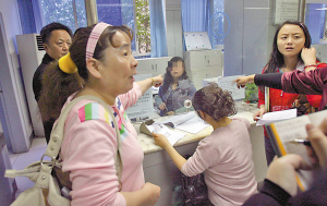 昨日上午9點半,醫(yī)療保險管理中心渝中區(qū)分中心二樓接待大廳內(nèi)人頭攢動,在一號窗口前排隊等待辦理業(yè)務的市民多達14人,但隊伍卻不曾向前移動半步。因為一號窗口內(nèi)根本不見工作人員的身影,這些市民從上午9點開始已經(jīng)守著空窗排了半小時。