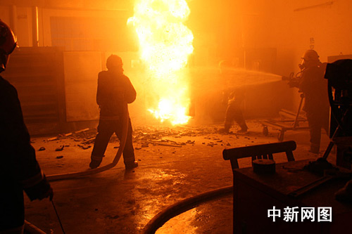 幾分鐘后,指揮員確認(rèn)粉塵密度已經(jīng)降到爆炸點(diǎn)以下,果斷命令戰(zhàn)斗班長(zhǎng)用撓鉤將烘箱門(mén)緩緩打開(kāi)。由于粉塵和空氣混合,在高溫的作用下從烘箱內(nèi)爆出一團(tuán)團(tuán)火焰,形狀似蘑菇云將廠房屋頂擊穿,在廠房頂部留下一個(gè)20多平米的大洞,一名戰(zhàn)士被烘燃引起的沖擊波擊倒在地,廠房?jī)?nèi)一片狼藉。